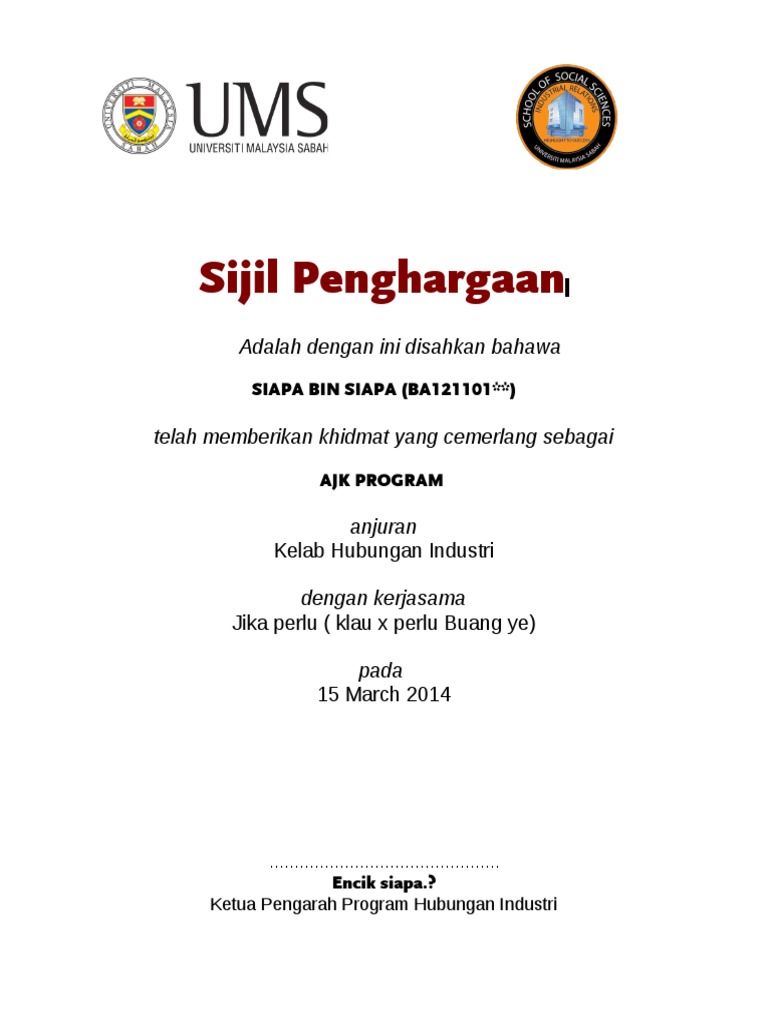 We are a sharing community. Announcement taman putra prima 8a puchong. Kerja kursus ini amat penting untuk mendapatkan keputusan yang cemerlang dalam peperiksaan sijil tinggi persekolahan malaysia (stpm). Sijil penghargaan ialah sekeping kenyataan rasmi yang menunjukkan penglibatan atau kejayaan seseorang dalam sesuatu aktiviti yang mereka sertai atau lakukan. Adakah anda mencari templat sijil penghargaan percuma?