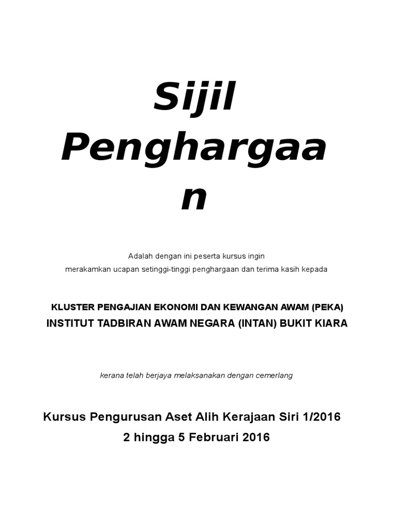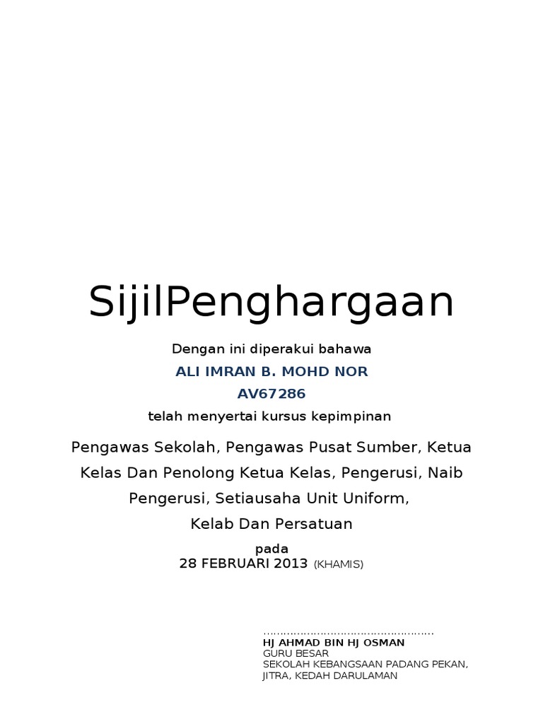 Contoh Sijil Penghargaan from imgv2-2-f.scribdassets.com Related image with contoh sijil penghargaan tamat perkhidmatan. Penghargaan sijil penghargaan pibg sijil penghargaan guru ucapan penghargaan dan terima kasih contoh penulisan ilmiah karangan penghargaan contoh sijil penganugerahan contoh prakata surat amaran surat amaran pekerja format sijil penghargaan contoh buat laporan. Use the download button below or simple online reader. Muat turunnya secara percuma dalam format ai atau eps. Contoh abstrak, isi kandungan penghargaan. Kerja kursus ini amat penting untuk mendapatkan keputusan yang cemerlang dalam peperiksaan sijil tinggi persekolahan malaysia (stpm). Permohonan juga dibuka sepanjang tahun dan. Anugerah pengurusan pibg cemerlang these pictures of this page are about:contoh sijil.