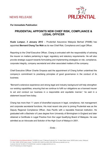 Rm 5.50 psf, rental to rate: Menara prudential 10 jalan sultan ismail, kuala lumpur. Prudential assurance malaysia berhad uz kartes. Official fan page for prudential assurance malaysia berhad. Wan saifulrizal wan ismail (ceo).